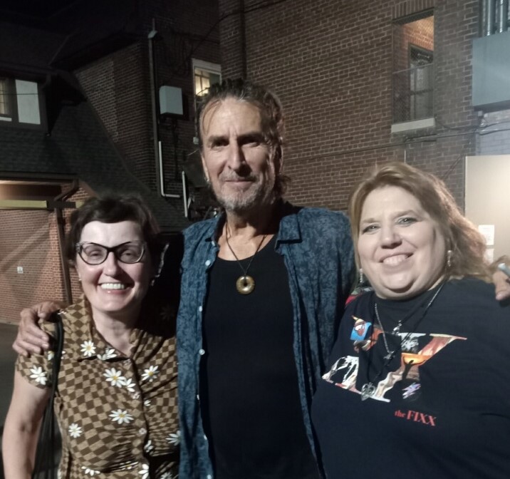 This is my friend Lisa and I with Jamie West-Oram. I went up to him, and he said, “Stacey!” Taken aback, I said, “Yeah! You know my name? Wow!” I was shocked and surprised that he knew my name. He said he recognized me from social media, as I’ve discussed the Fixx many times on Facebook and YouTube, but so do many other people. I was floored. This moment is right up there with the time Presiding Bishop Katherine Jefferts Schori of the Episcopal Church took the time to put down her crosier to get a pen to sign my book. (I’ll elaborate more on that in a separate entry). His wife of 35plus years, Bibi, is an artist and posts her art on Instagram as do I. She has “liked” some of my work and that flatters me. She was present this night, but didn’t mingle with the fans. From a distance, I saw her and Jamie showing affection towards each other, a loving couple in a rock’n roll world.